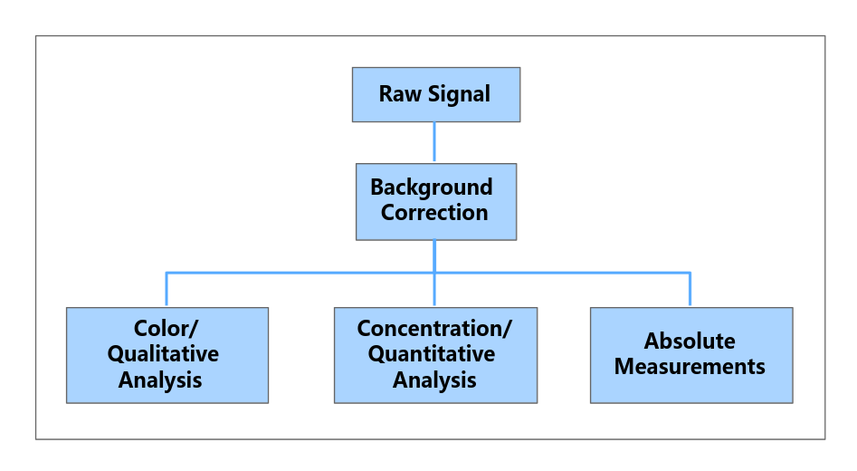 2. Коррекция фонового сигнала : Скорректированные значения = Исходные значения - Значения в темном диапазоне ( важный  шаг ).